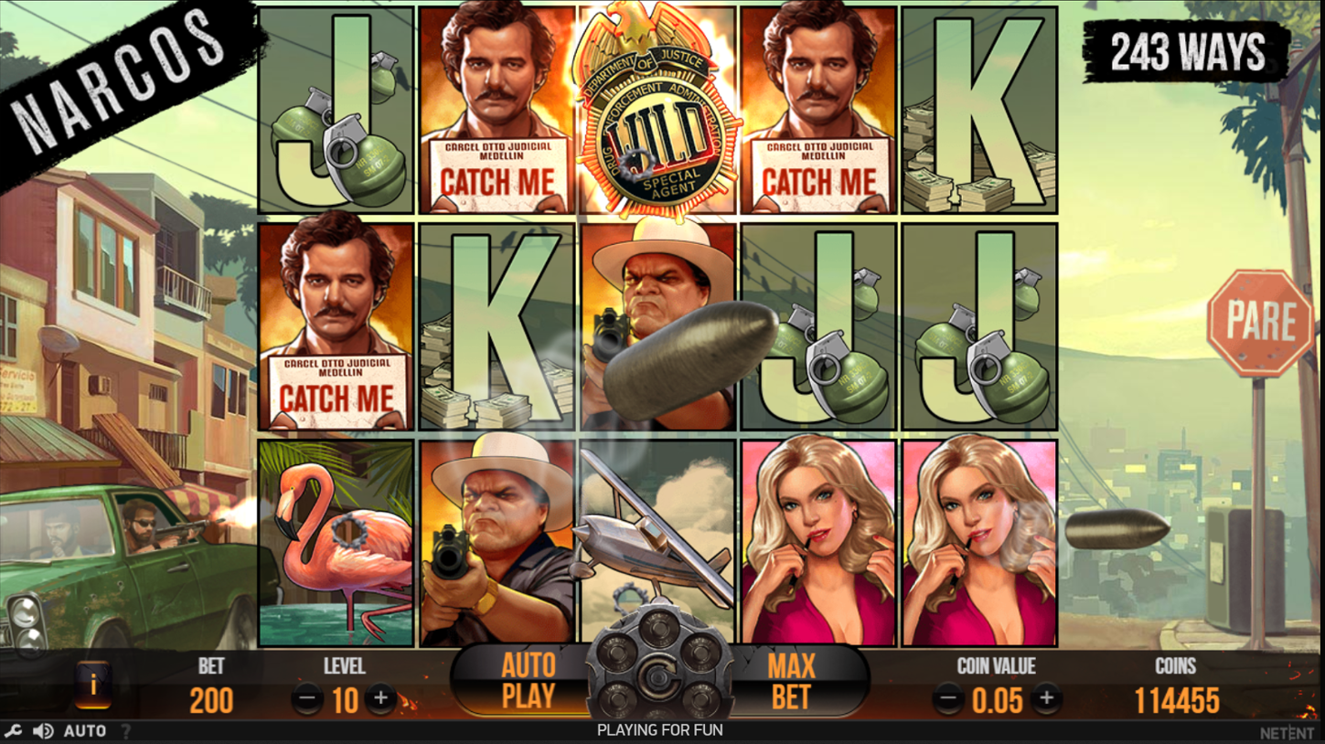 - Narcos. Narcos is a relatively new slot game made by NetEnt. If you’re a fan of Netflix shows, then the chances are that you already know what this slot game is about. Specifically, the slot game’s theme is to the tune of Narcos, a hit show on Netflix that details the life of Pablo Escobar and other drug lords of the Americas. The slot game isn’t as dramatic, but it still offers a very fun experience that players can enjoy. The main game is based on 243 ways to win. There are walking wilds, free spins, multipliers, and other types of bonuses – including the so-called Locked Up jackpot prize. Best of all, the game is fully optimized for mobile play, which means that you can play it from your mobile device no matter where you at.