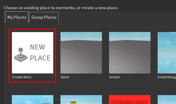This will create a private empty place. To change this, simply click Games on the sidebar and then click on the grey private button.