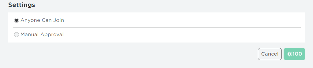 - Select Anyone can join to make the group Public. To make it private, select Manual Approval.