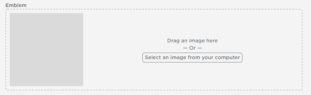 - Under the Emblem header, click on Select an image from your computer to select an emblem from your computer. You can also drag and drop an image. If you do not have a good one right now, don’t worry, you can change the emblem later on.