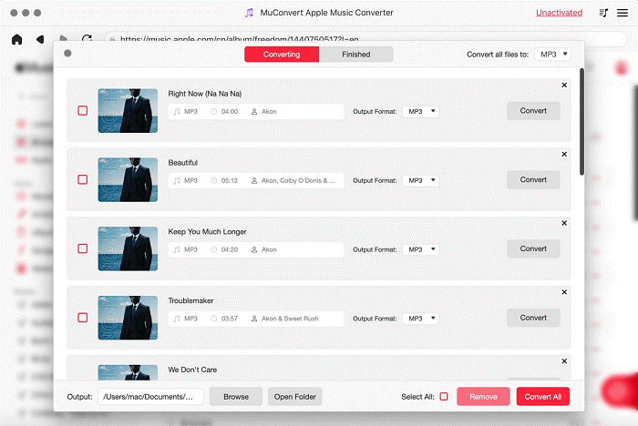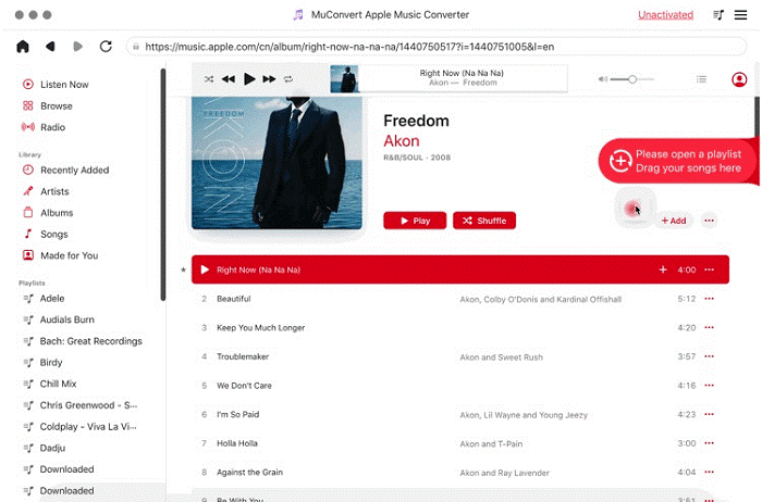 By embedding the Apple Music web player within MuConvert Apple Music Converter, the software enables users to access all resources provided in Apple Music and directly add the songs to download with the simple drag-and-drop process. Compared with the traditional iTunes syncing operation, which requires users to pre-install iTunes to build the connection, this brand-new MuConvert Apple Music Converter greatly enhances the user experience to enable more convenient Apple Music songs to download functionality.