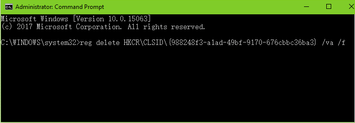 reg delete HKCR\CLSID\{988248f3-a1ad-49bf-9170-676cbbc36ba3} /VA /f
