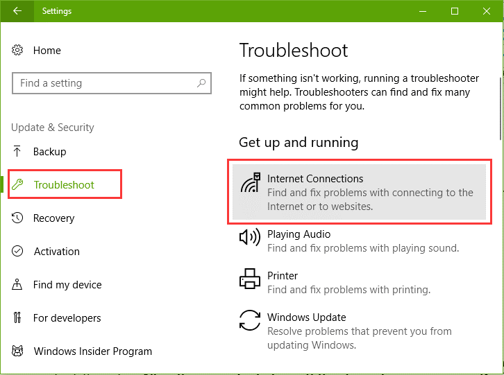 Step 2- Choose the Troubleshoot > Internet Connections.
