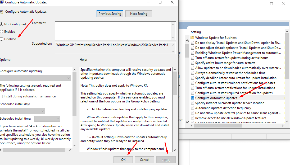 4. Choose Enabled > Notify for download >notify install > Apply.