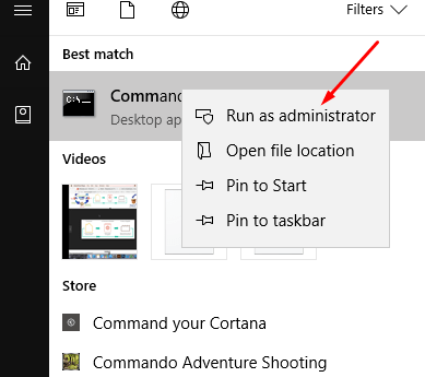 1. Use Win + S for Windows Search and then type command prompt. Right Click on it and then select Run As Admin.