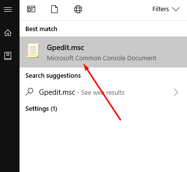 1. Type Gpedit.msc in the Windows Search or Start Menu.