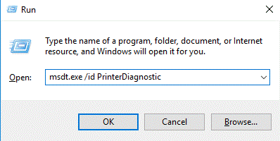 Step 1: Open the Run and type msdt.exe/id Printer Diagnostic. Hit the Enter key. Then from the list of the printer, click on the problematic printer.