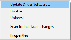 Step 3: Right-click on the concerned driver and then click on Update Driver Software.