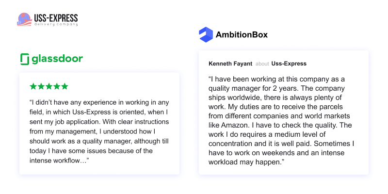 - “I didn’t have any experience in working in any field in which Uss-Express is oriented when I sent my job application. With clear instructions from my management, I understood how I should work as a quality manager, although till today I have some issues because of the intense workflow…” – current employee on Glassdoor.