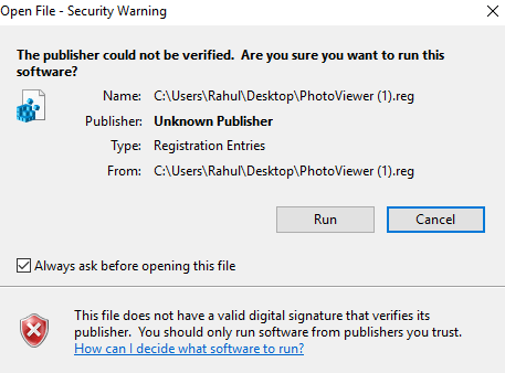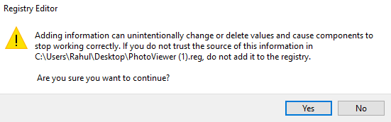 Step 3: Open the PhotoViewer.reg file > Run.