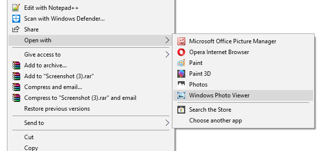 Now to confirm, Right click on any image file and choose open with, you can see Windows Photo Viewer app listed there.