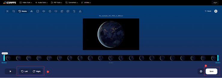 123APPS is another web platform possessing different utilities that will help you control or adjust your video or audio files effortlessly. The website claims to offer a high-speed rotating service and professional-like output. Meanwhile, you can take advantage of this free platform across any device, including iPhone and Android. There is also a wide range of supported formats for you to rotate the video online without hassle.