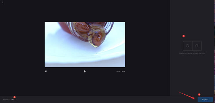 Step 2: Go on and use the leftward or rightward buttons to rotate your video online. Next, you can choose a different format for the final video through the Format option. Then, click the Export button to save it.
