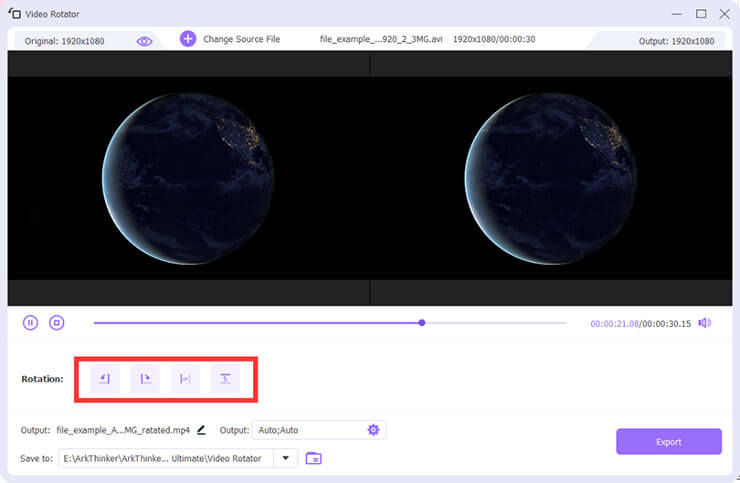 Step 2: You can see four buttons for Rotation presented in different directions. Choose one and rotate your video. Click the play button above to preview the video before exporting.