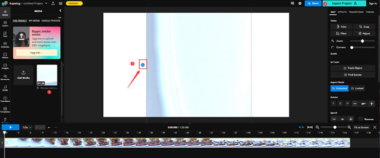 Step 2: On the editing page, click the Add Media button to upload a video and drag it to the blank canvas. Click the video on the canvas, and the handles will show up.