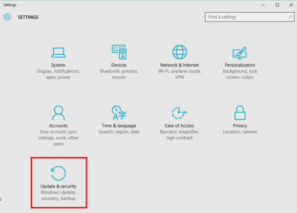 Step 1- Click Start > Settings > Update and Security.