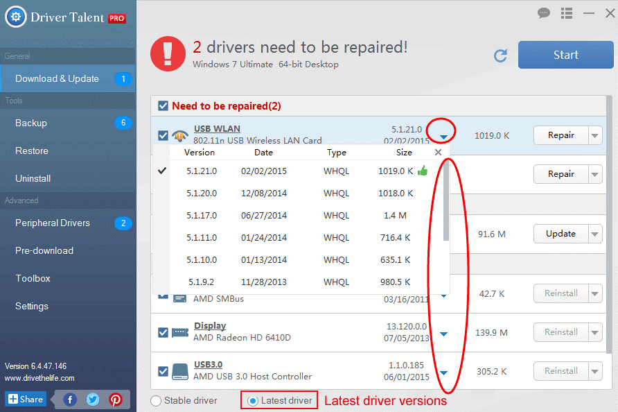 Step 2- Click “Repair” to fix drivers or update them.