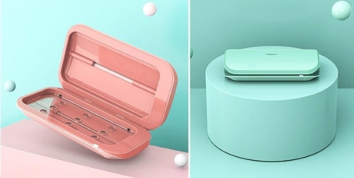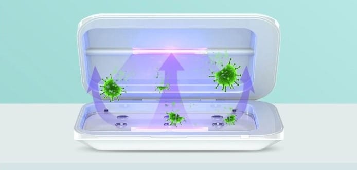 Smart Sanitizer Pro is a smartphone sanitizer that sanitizes your smartphone using UV technology. It is shaped like a small box capable of holding your device. A power cord is also available. You just need to put your smartphone in the box and plug-in the power cord for the sanitizer to work. There are two UV-C lights placed on the inside that kill germs like viruses and bacteria.