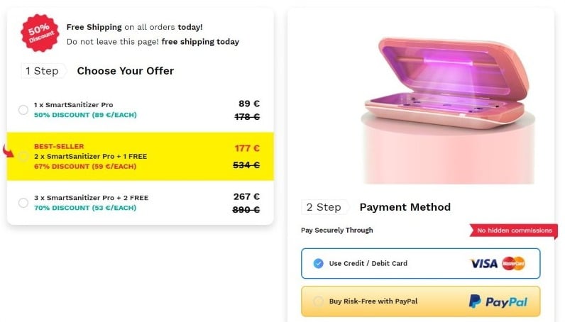Smart Sanitizer Pro is a very useful gadget that anyone can use. But, the price of the gadget isn’t suitable for everyone. It costs around $173. However, currently, they are running a promotional offer where you’ll get a 50% discount. So, it will cost you only $86. Therefore, this might be the right time to order it.