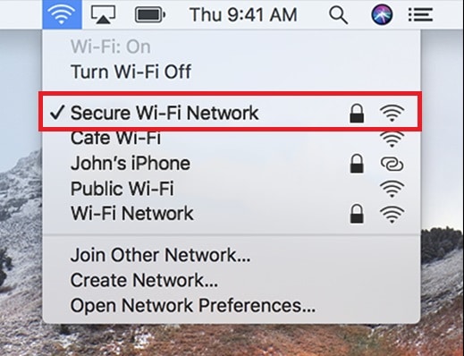 - On Mac, click the WiFi icon on the menu bar.