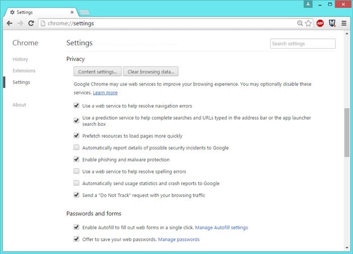 Step 1- Go to Chrome then options. Click on Settings and tap on advanced settings.
