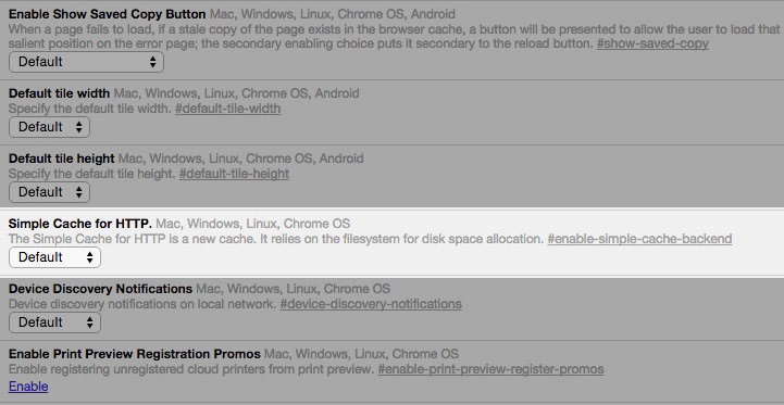 Step 1- In your Chrome browser type “chrome://flags/#enable-simple-cache-backend” and open the page.