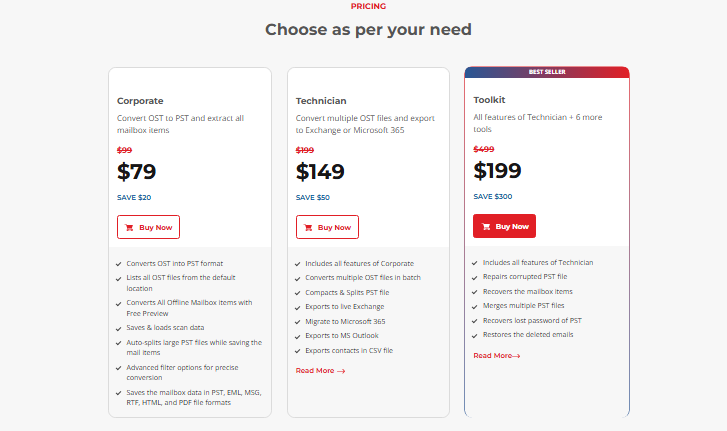 Talk about the affordability? The pricing tier fits your needs. While you may have to upgrade to enjoy several other capabilities, its performance is dependable, and there’s also a reliable customer support to guide their users every step of the way. With this Stellar Converter for OST, productivity in the office is unstoppable.