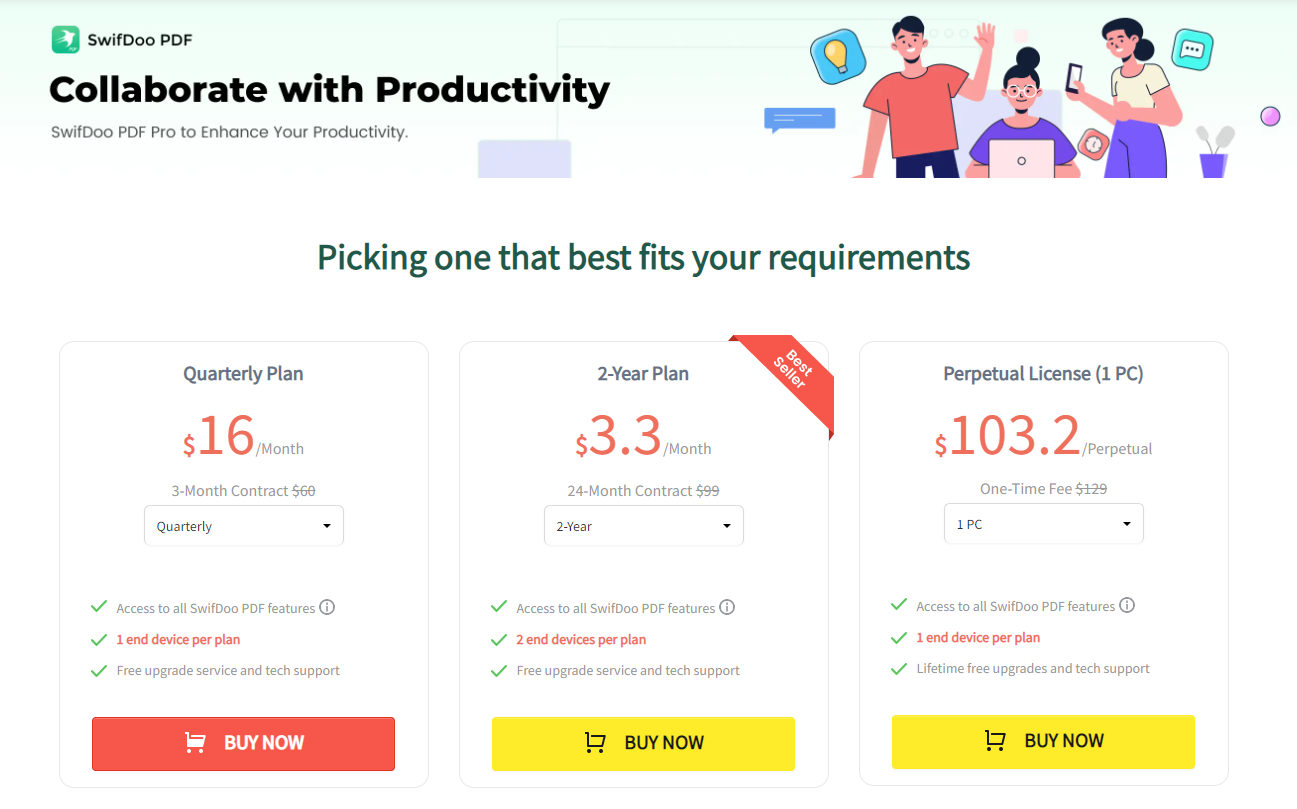 To learn about the pricing of all the versions, kindly visit the official store page at https://www.swifdoo.com/pricing.