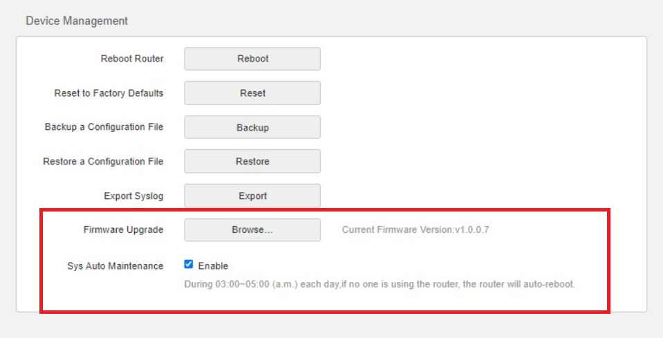 Upgrade Tenda router firmware: Router software may contain bugs and issues, that can be easily fixed by upgrading the router firmware. You should enable the ‘Sys Auto Maintenance’ feature through the ‘Administration’ section in the control panel.