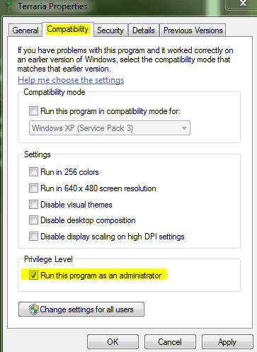 The third reason behind the terraria startup crash is Terraria having a lack of administrative access, and you can fix it by right-click at the game’s exe > Then click on Properties > Open the Compatibility tab> then check “Run this program as an administrator.”