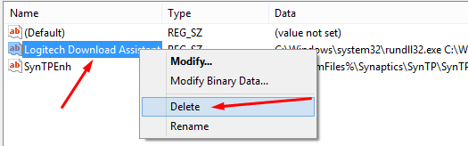 Step 3: Find the Logitech Download Assistant and delete the entry.