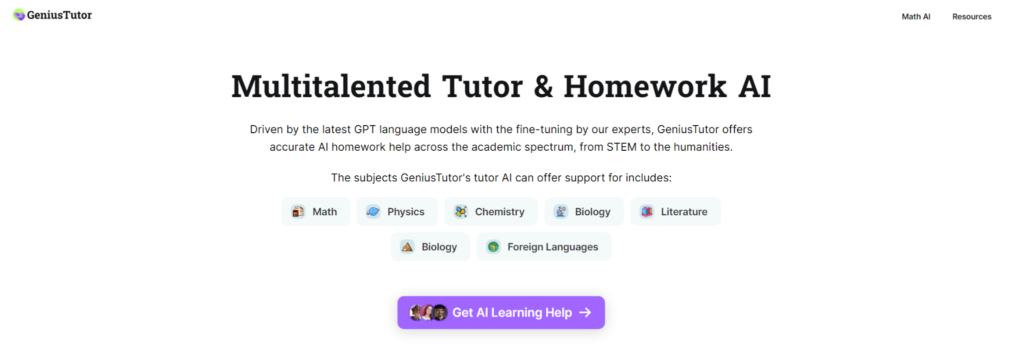 Whether you’re grappling with the complexities of calculus or the nuances of literature, Genius Tutor emerges as the best AI homework helper with its expansive subject coverage. Its algorithm is fine-tuned to understand and provide solutions across various educational domains, ensuring that students receive well-rounded support.
