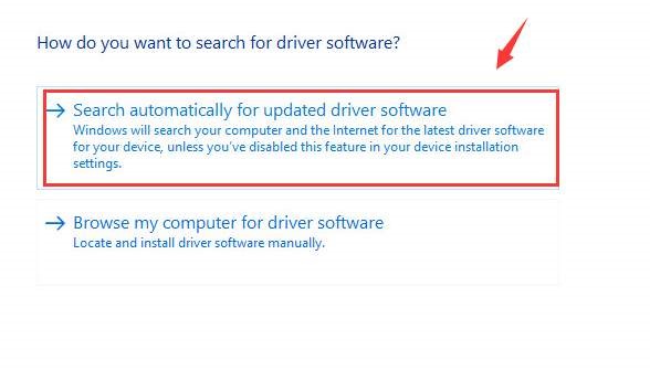 Step 5: Then in the next window, choose the Search Automatically for Updated Driver Software option.