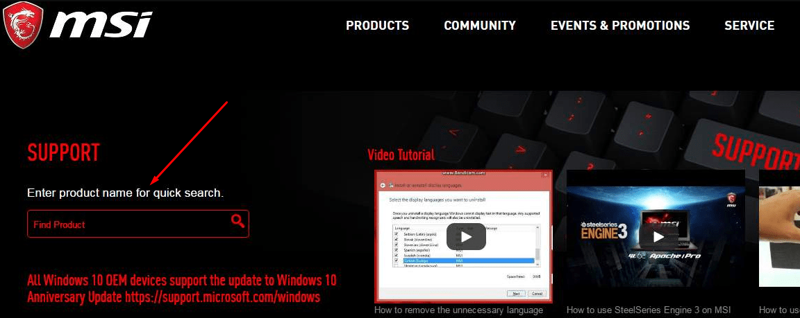 Step 2: Enter the name of the MSI Motherboard Driver in the search tab that’s present on the site.