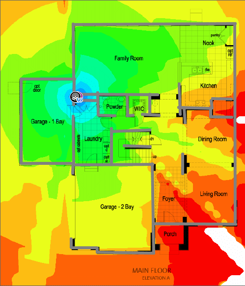 The green zones have strong WIFi signal strength, the yellow zones have acceptable signal strength while the red and orange zones have terrible signal strengths. hile WiFi signals are omnidirectional, materials like concrete, metal, and plastic can dampen them and reduce their strength. This means that there will always be some parts of your house that doesn’t get proper WiFi. No matter how fast your Internet is, there will always be dead zones since it’s a physical limitation.