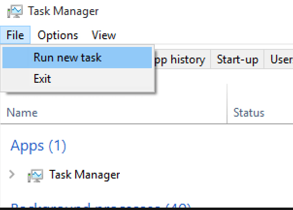 You have to open TASK MANAGER and then opt for RUN NEW TASK from the File menu.