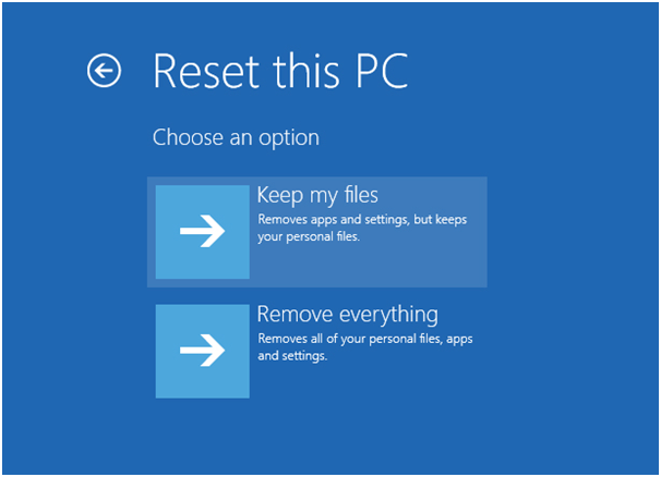After clicking on RESET This PC, click on KEEP MY FILES and follow the further commands.