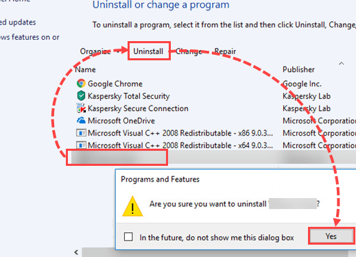 Step 2: Select antivirus or software that you want to remove and then right click on it > Uninstall.