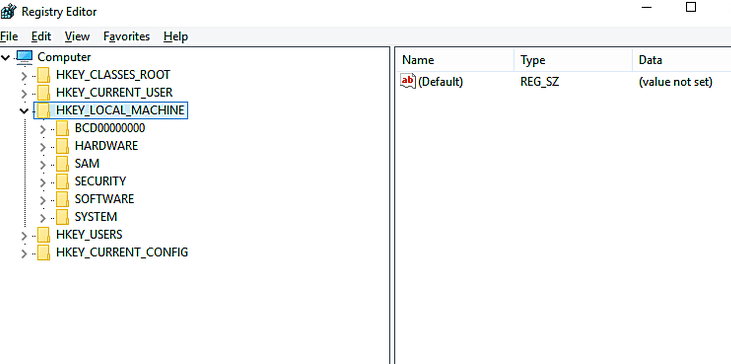 Step 2: Go to Computer > HKEY_LOCAL_MACHINE from the list at the left side.