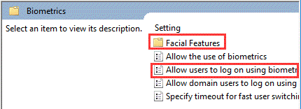 Step 3: Double click Biometric > Allow the use of Biometric.