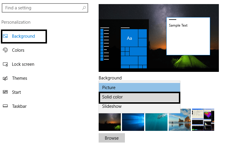 The first solution that we propose is changing your desktop to a static background. It is being stated that this process uses the hardware power if you set the desktop background to a slideshow.