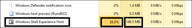 Users may face issues with the system, where the Windows Shell Experience Host occupies a large portion of the memory. It does not exactly restrict CPU power for most of the users, but it surely drains the battery and might even cause freezing of the system especially when the usage projects up to 100%. So it is required to fix this Windows Shell Experience Host High CPU Usage Problem. Check this image. You can see that it is using 40% of my CPU power and 150MB of RAM, without doing anything.