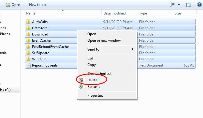 Open Windows Explorer > go to C:\Windows\SoftwareDistribution