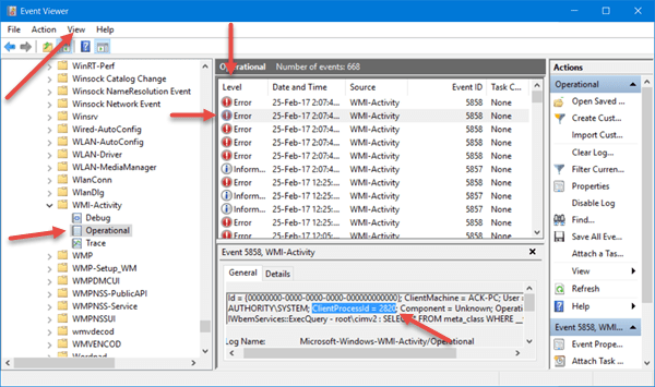 Open Task Manager > Services > click on PID to arrange the processes by PID. Find the process with the matching process ID from Event Viewer. This service is causing WMI high CPU Usage.