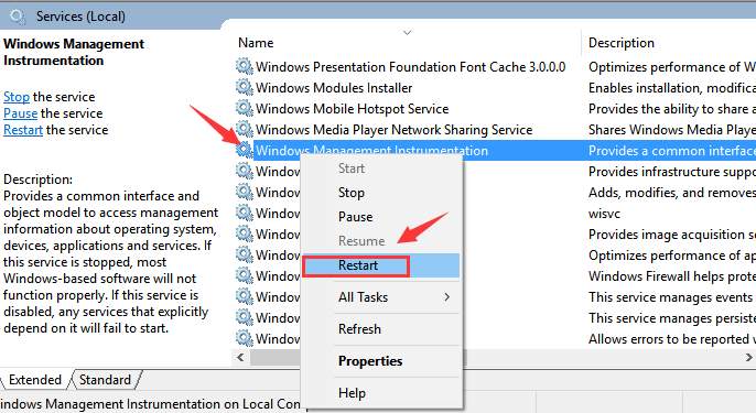 Repairing corrupt files may not work 80% of the time. In this case, users can employ a more efficient method to solve the troubleshooting issue. They can try restarting the WMI service itself.