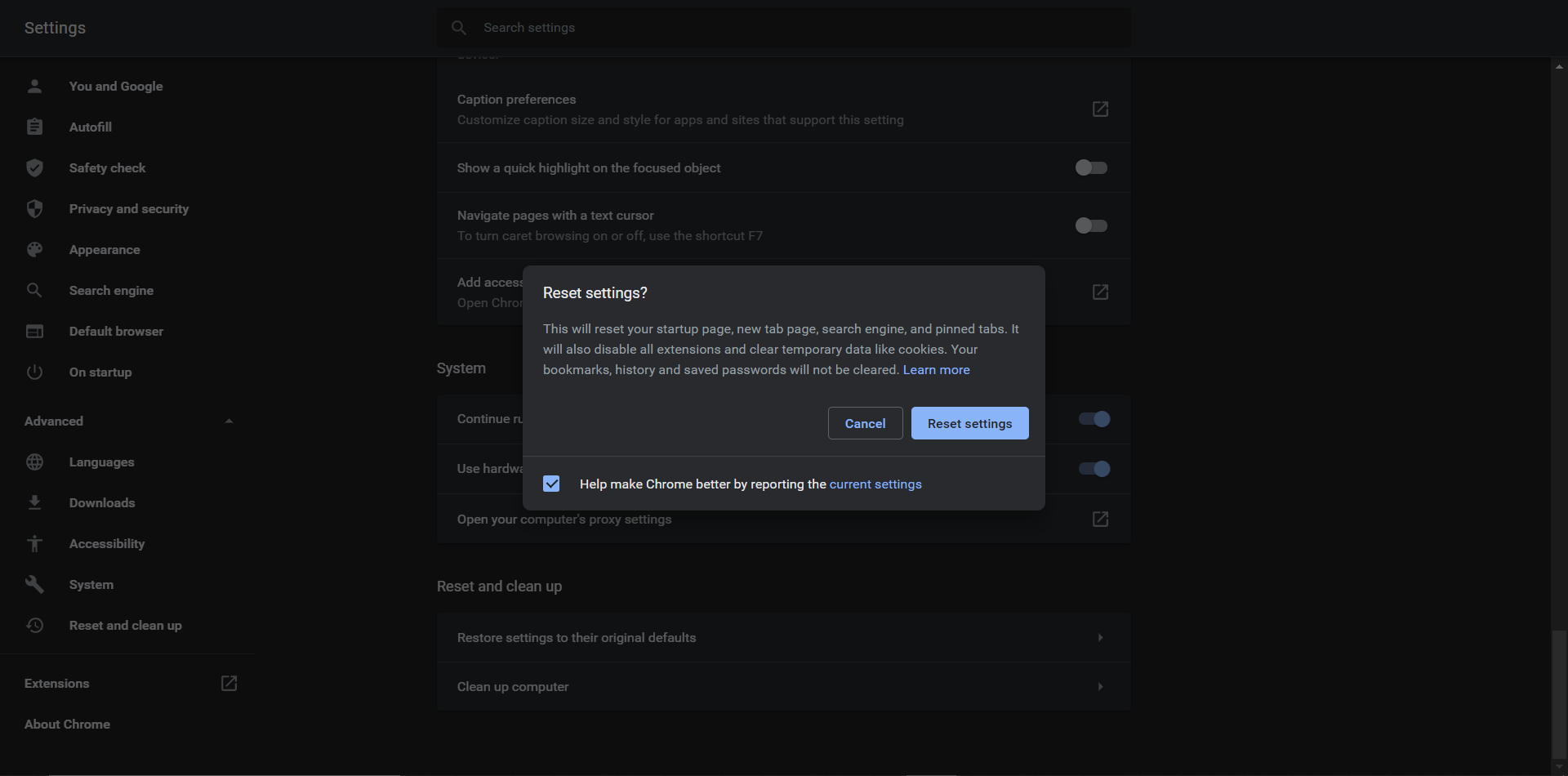 If YouTube is still unable to play the video you clicked on, and encountering YouTube error 400 you should reset the browser to its default settings. To reset your browser, follow the underlying steps: